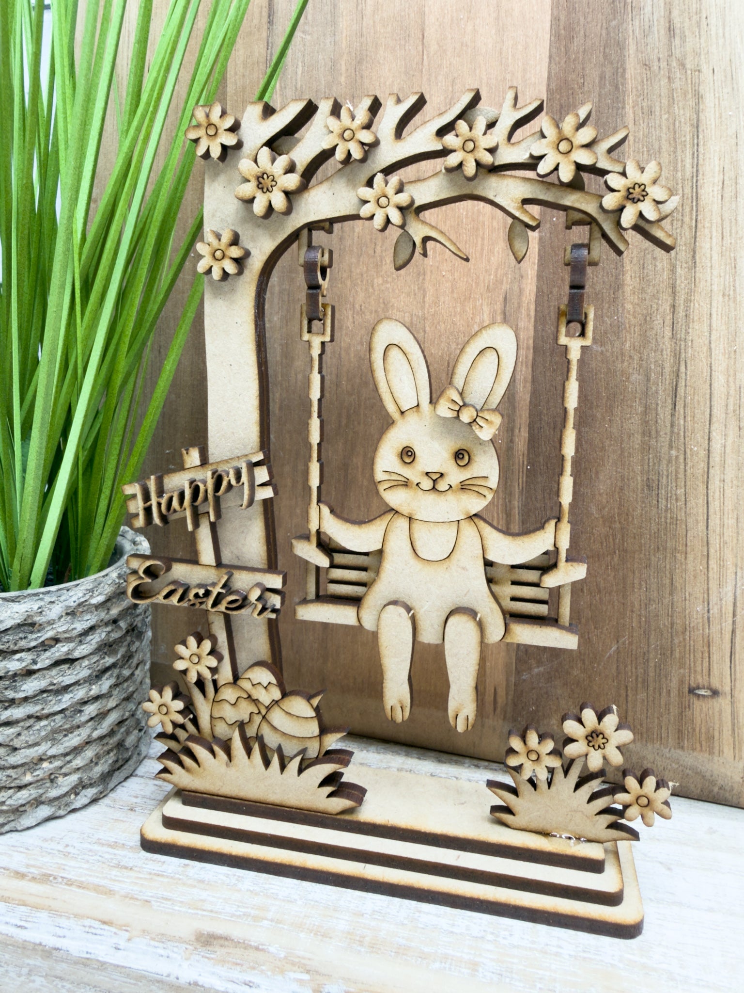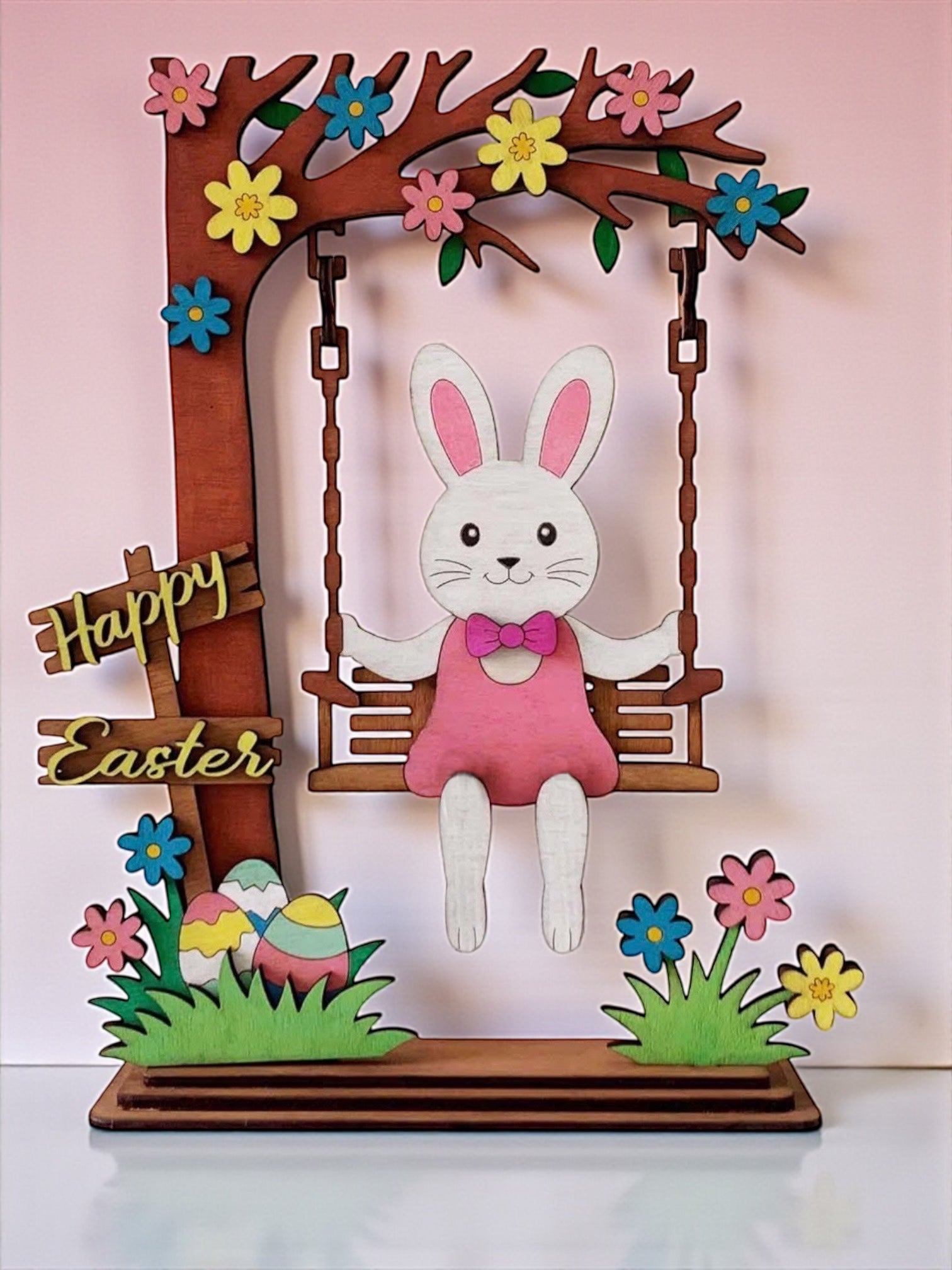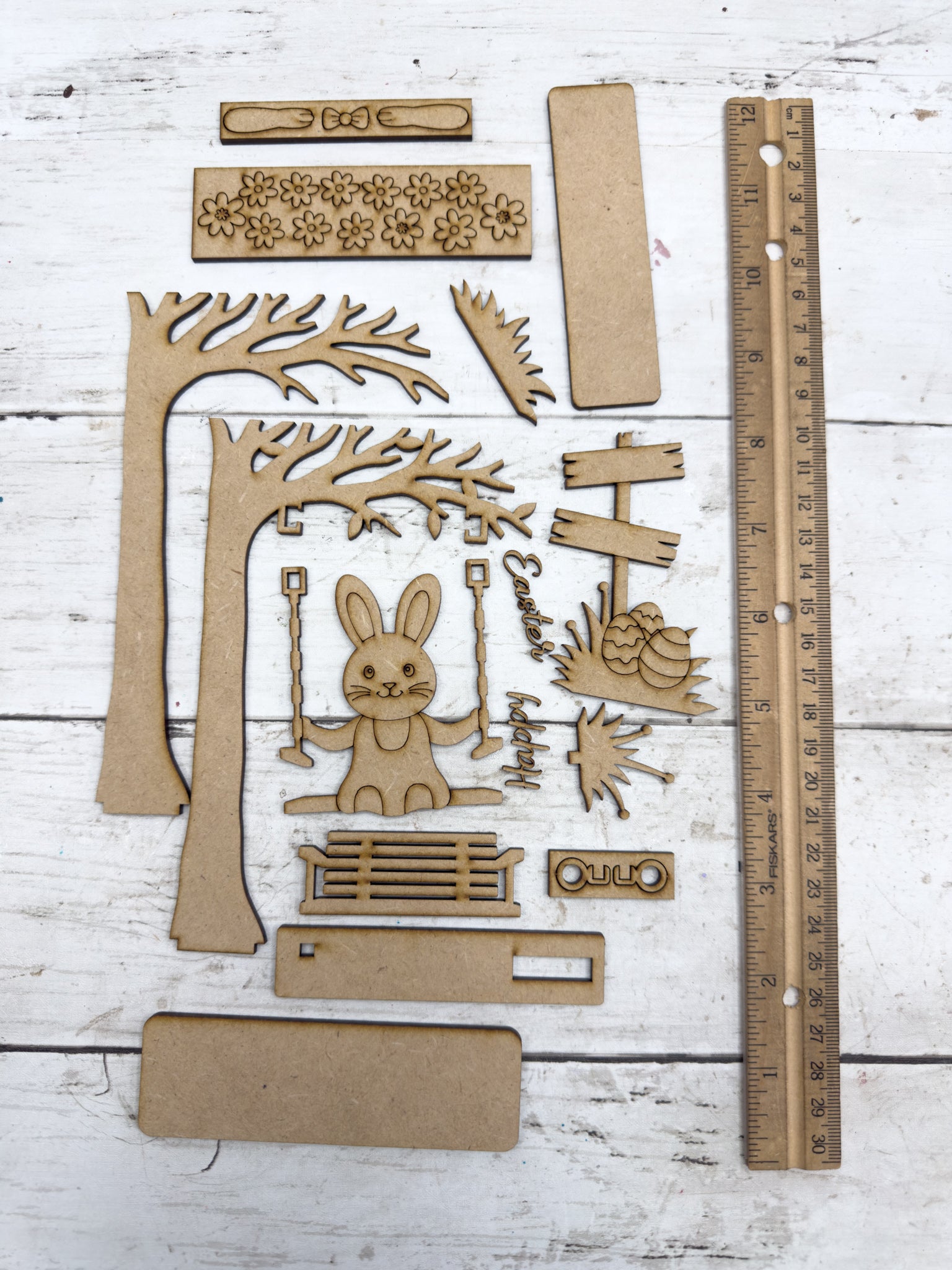 Bring a little easter vibe to your decor with this Swinging bunny DIY Craft Kit! This unique shelf sitter features a cute bunny swinging — the perfect blend of holiday and cute.
