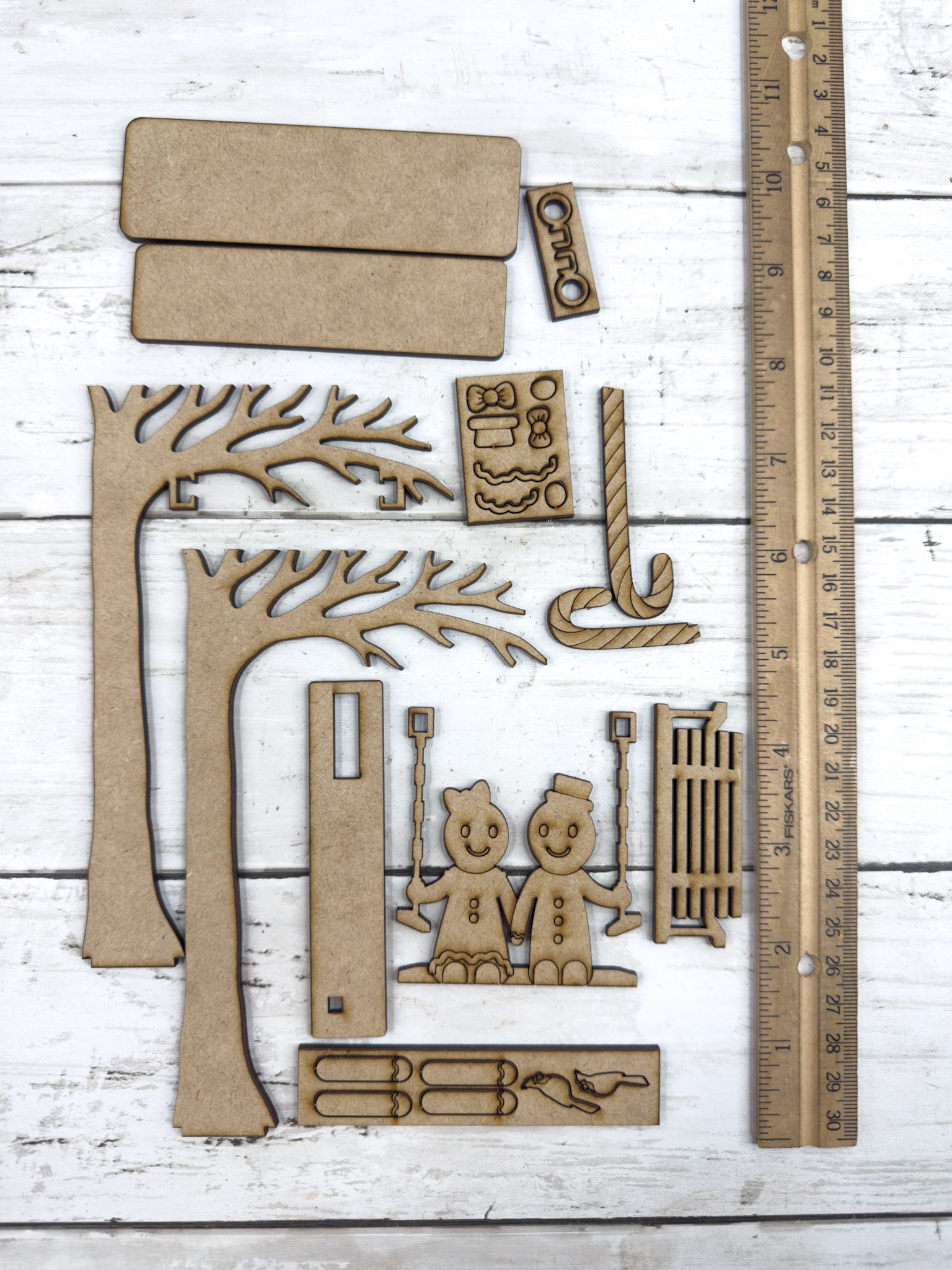 Each piece is laser cut from smooth MDF wood in the USA and ships unfinished, making it easy to paint, stain, glitter, or embellish to fit your personal Christmas style.