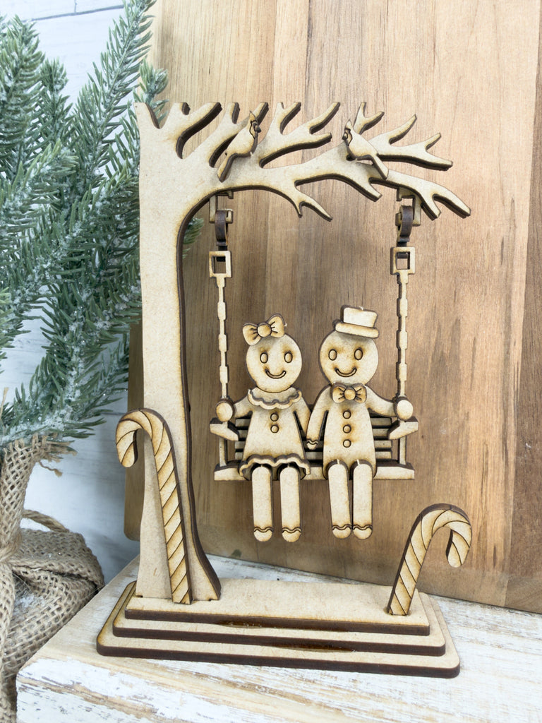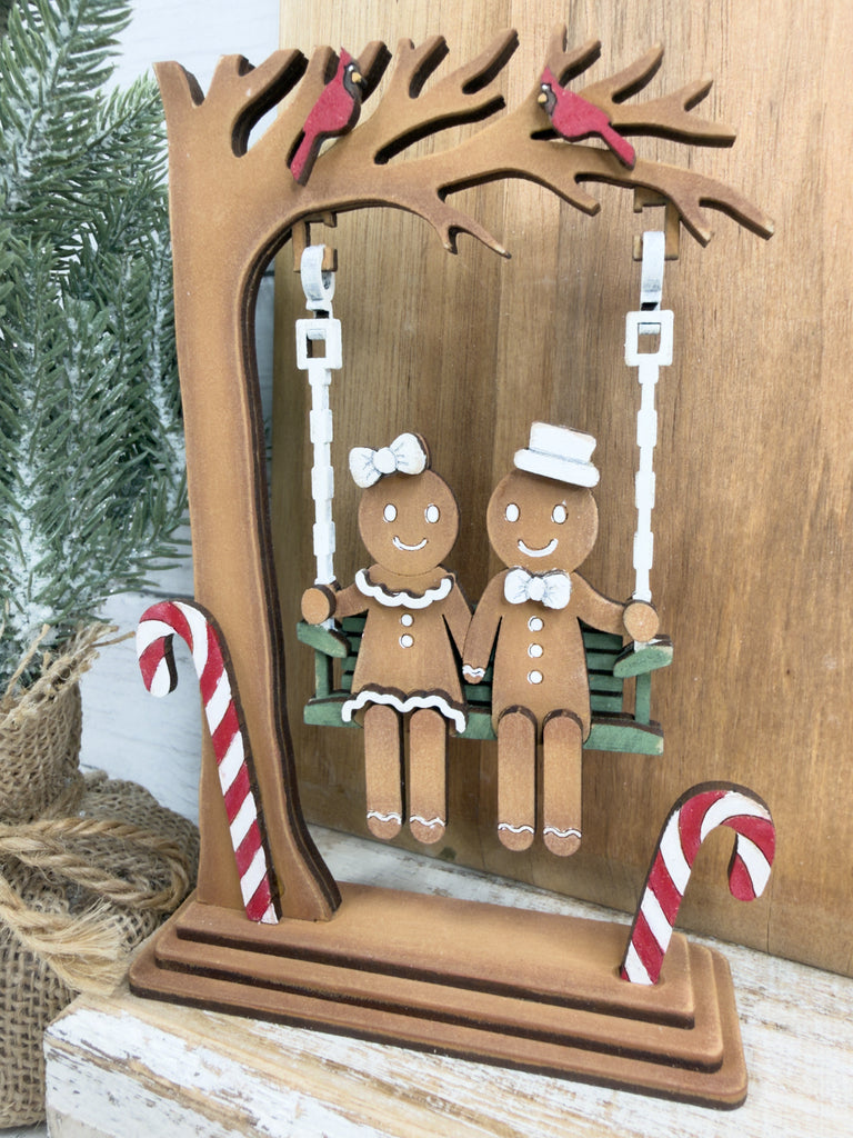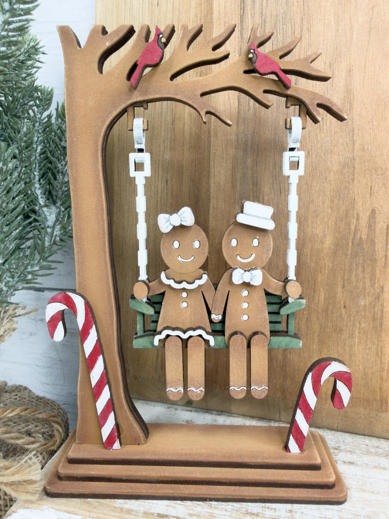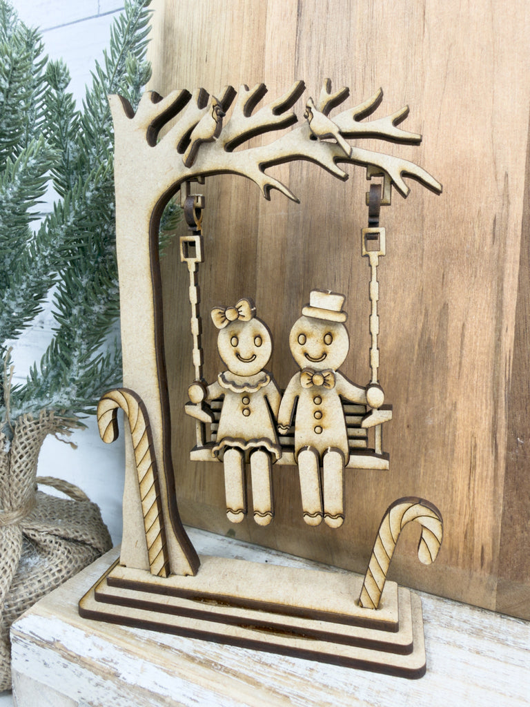 Bring a festive vibe to your winter decor with this Swinging Gingerbread couple DIY Craft Kit! This unique shelf sitter features a gingerbread couple swinging — the perfect blend of holiday and cute.
