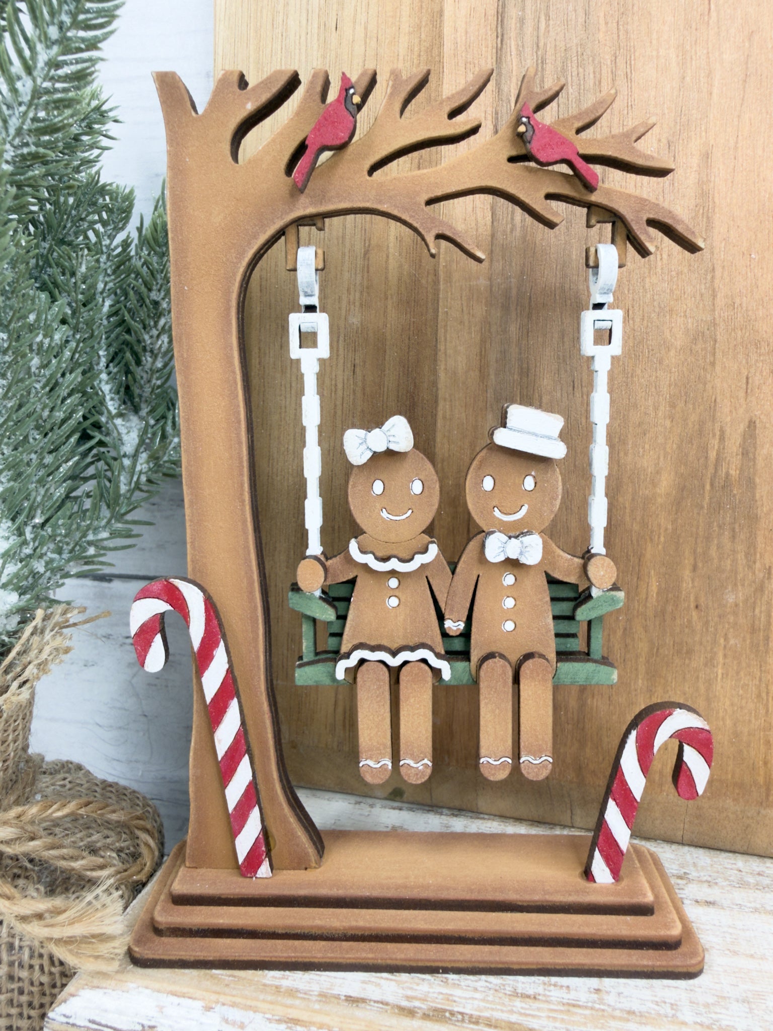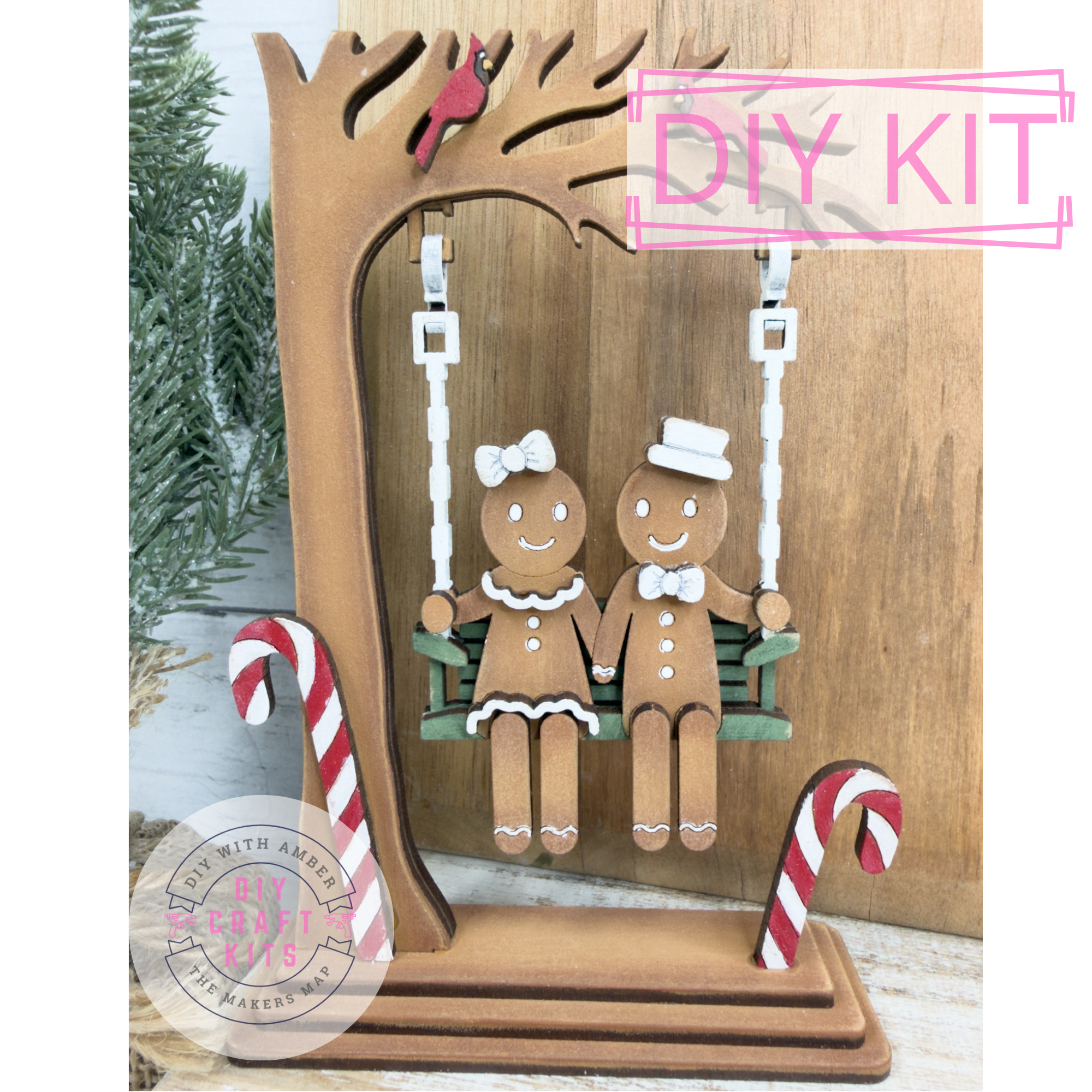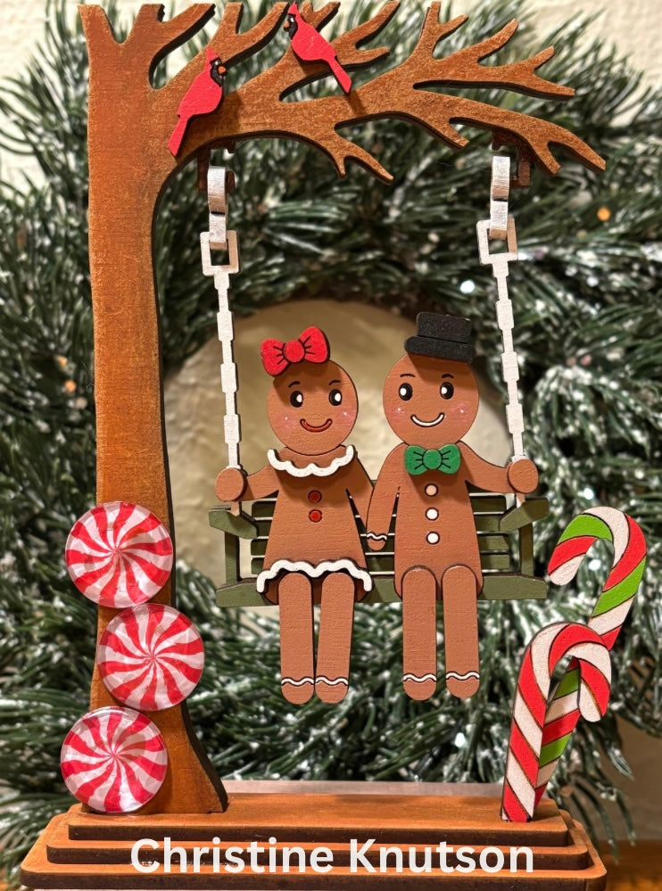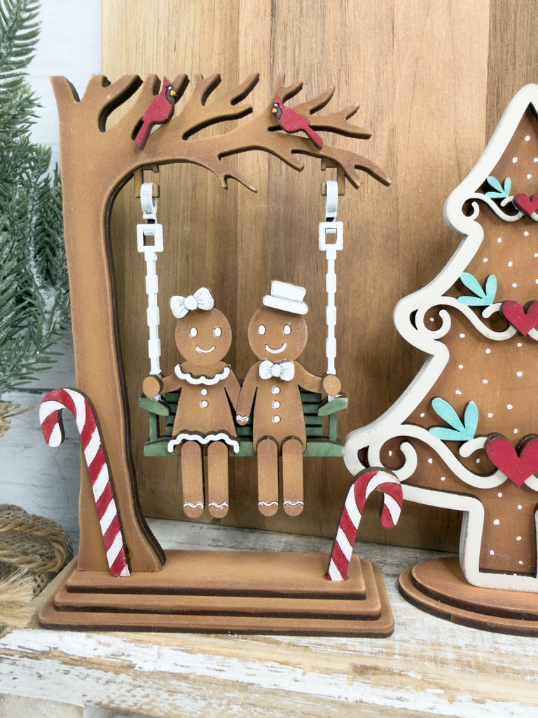 Bring a festive vibe to your winter decor with this Swinging Gingerbread couple DIY Craft Kit! This unique shelf sitter features a gingerbread couple swinging — the perfect blend of holiday and cute.