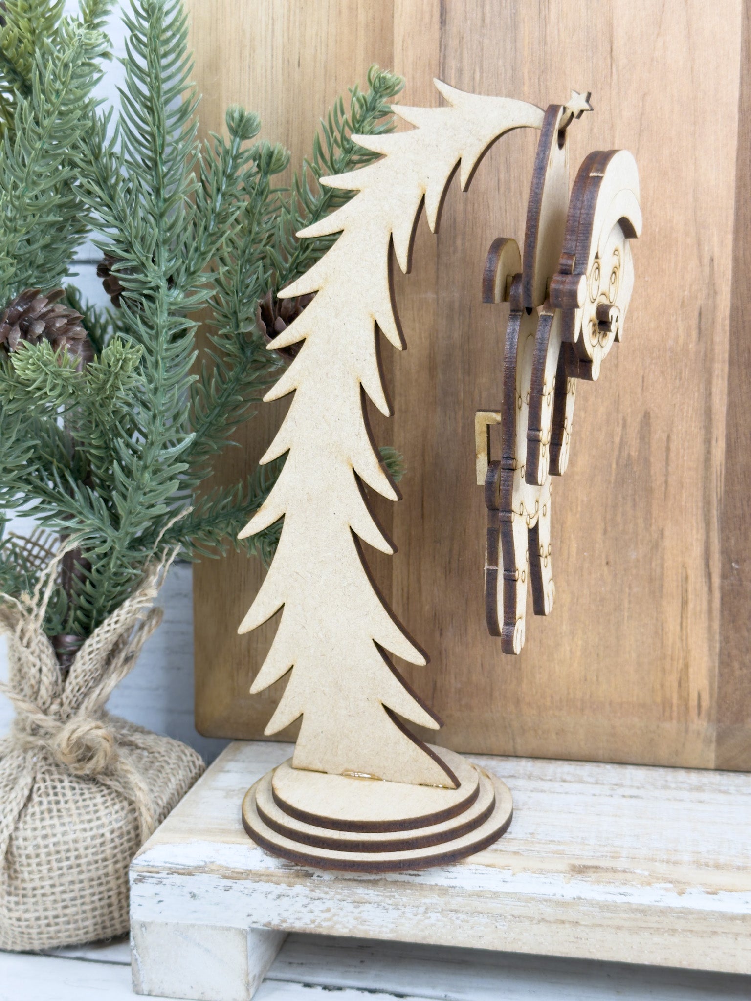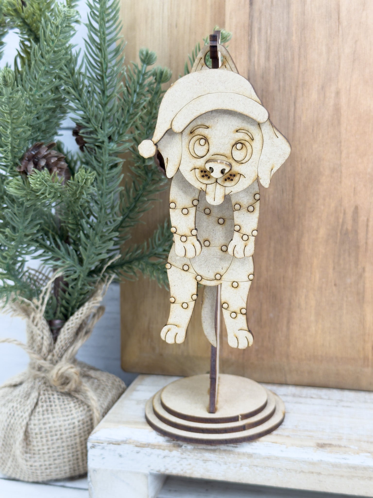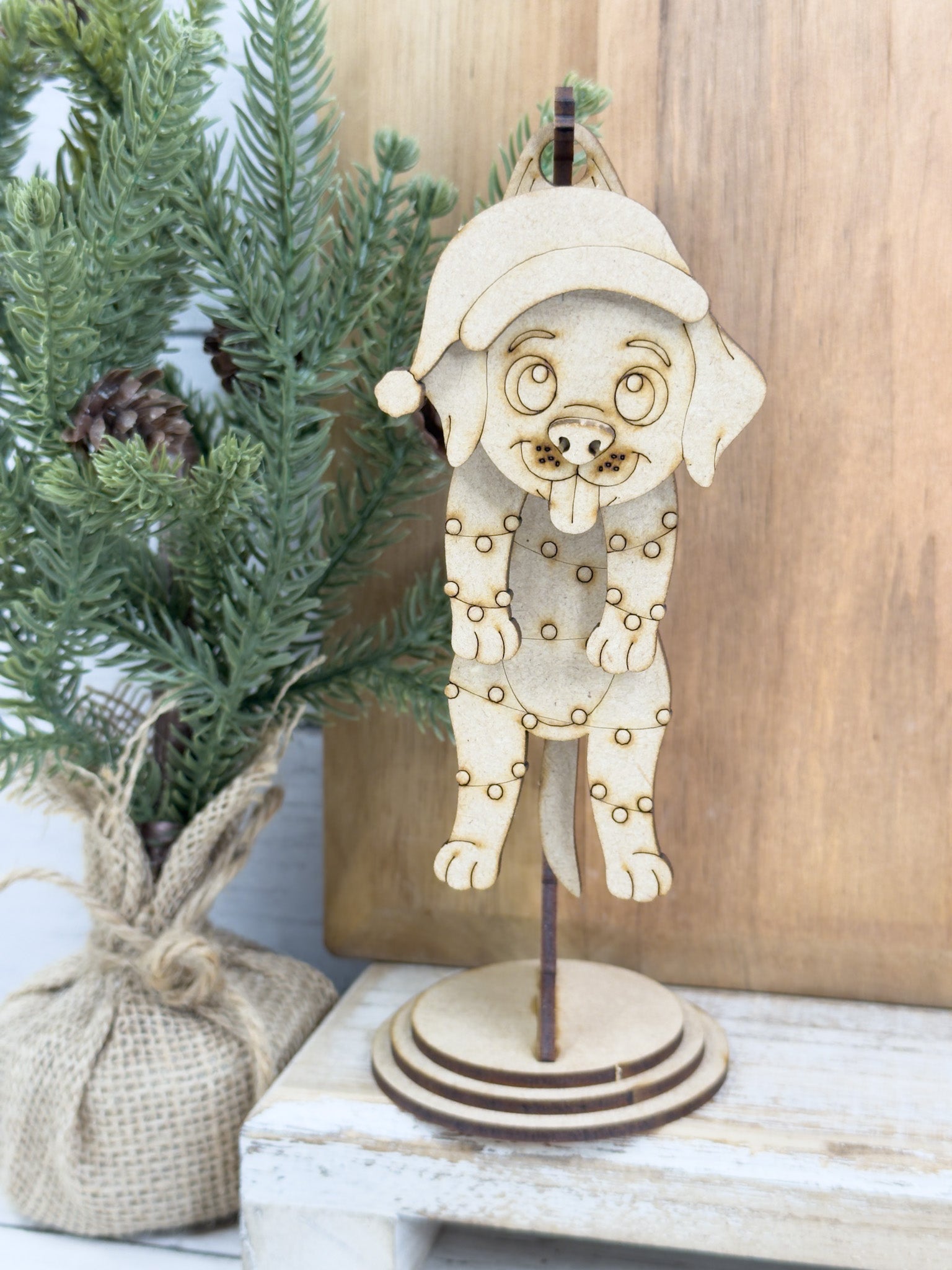Bring some jolly movement to your holiday decor with this Swingy Christmas Puppy Dog Hanging Stand DIY Kit! 🎄🎅 This adorable Christmas craft features a curved display stand and a layered Christmas Puppy Dog piece that gently swings when touched. Each part is laser cut from 1/8 inch MDF and arrives unfinished, perfect for painting, staining, or adding glitter in your own festive style. ✨