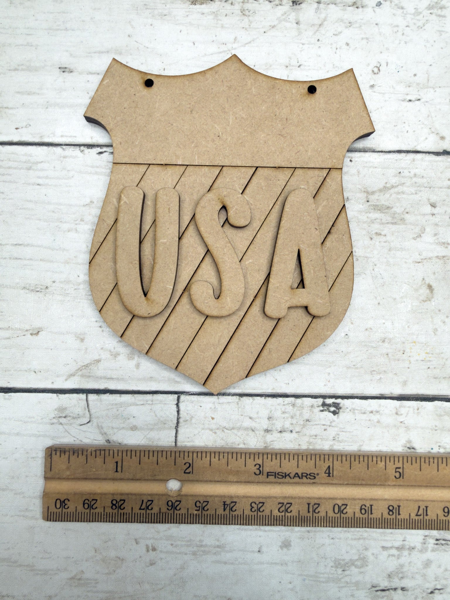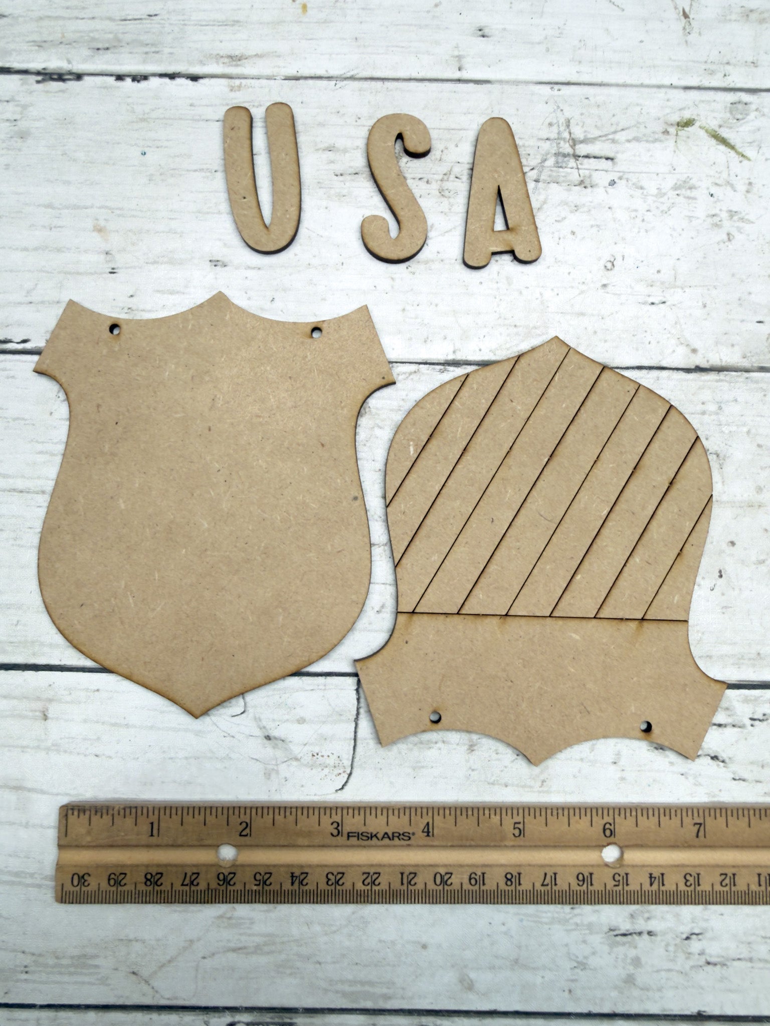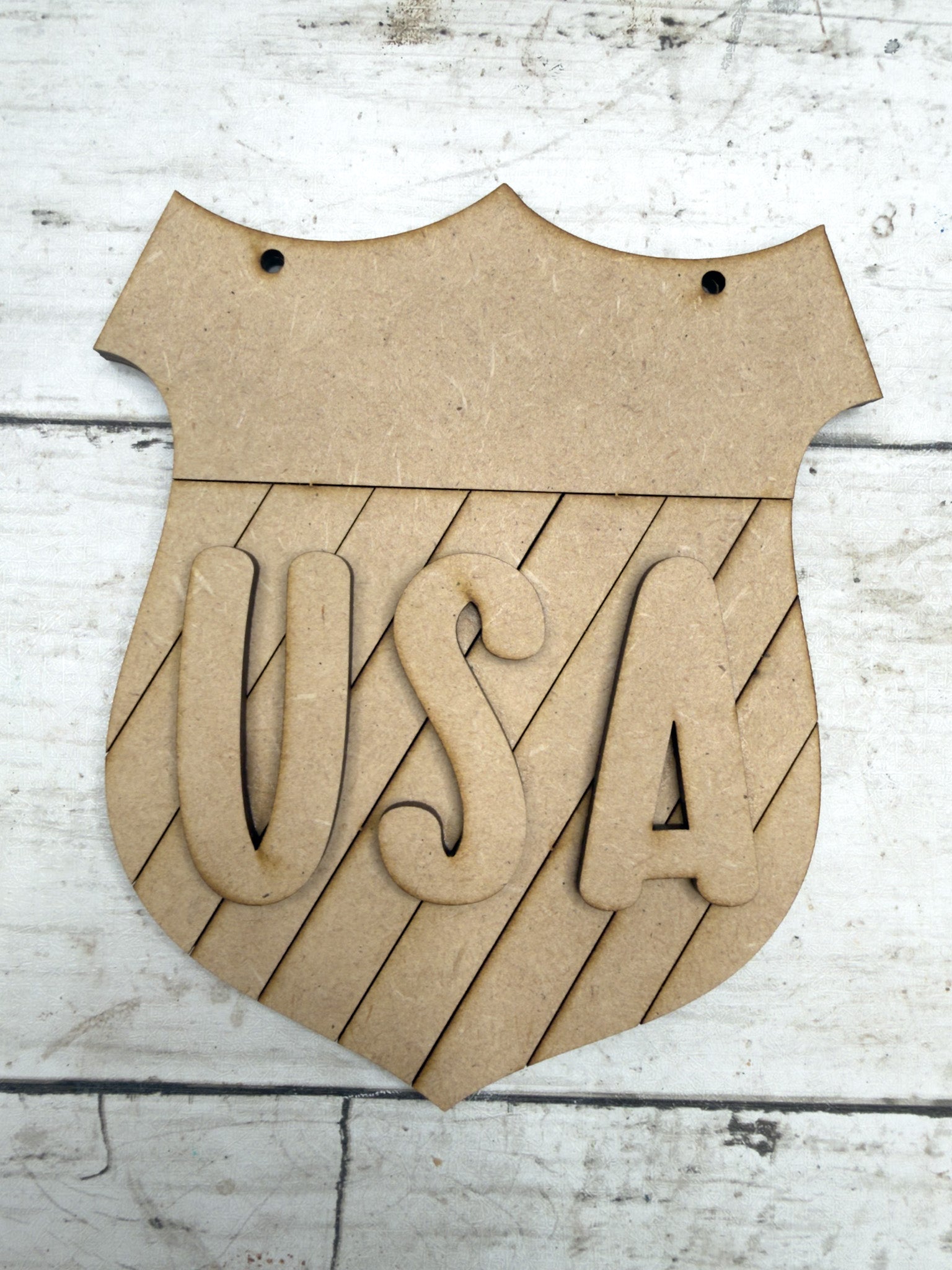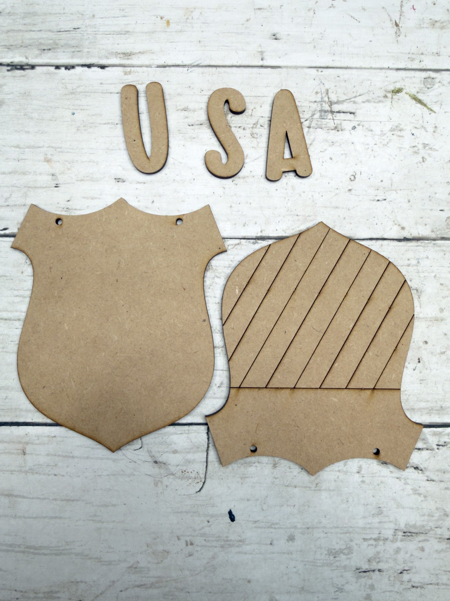 Add a bold and classic patriotic touch to your décor with this USA Badge Hanging Sign DIY Kit! Designed in a badge-style shape with layered “USA” lettering and subtle wood plank detail, this piece is perfect for celebrating Americana style in a simple, eye-catching way.