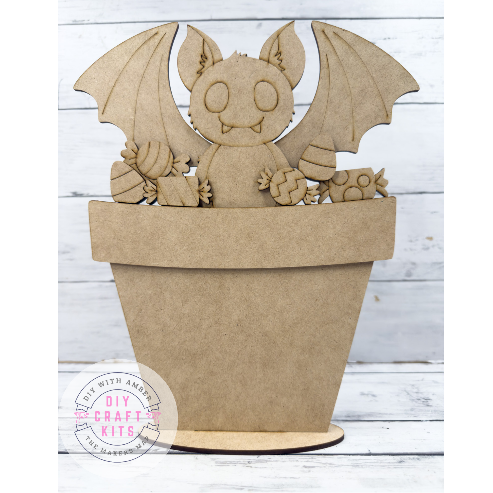 This kit does not include paint, glue, brushes, or any additional embellishments to complete the Vampire Bat and Candy Insert for Interchangeable Slot Bases DIY Craft Kit.