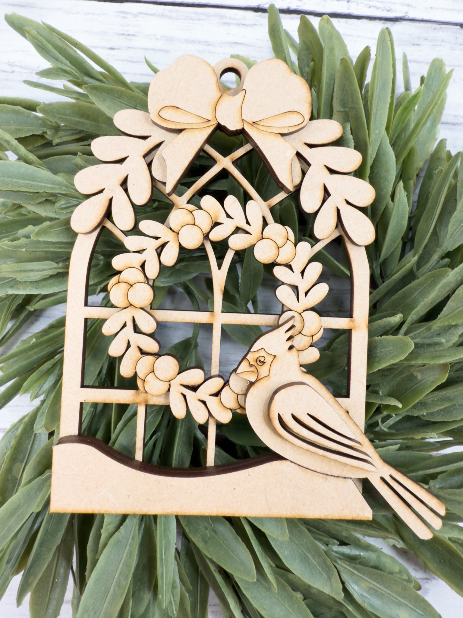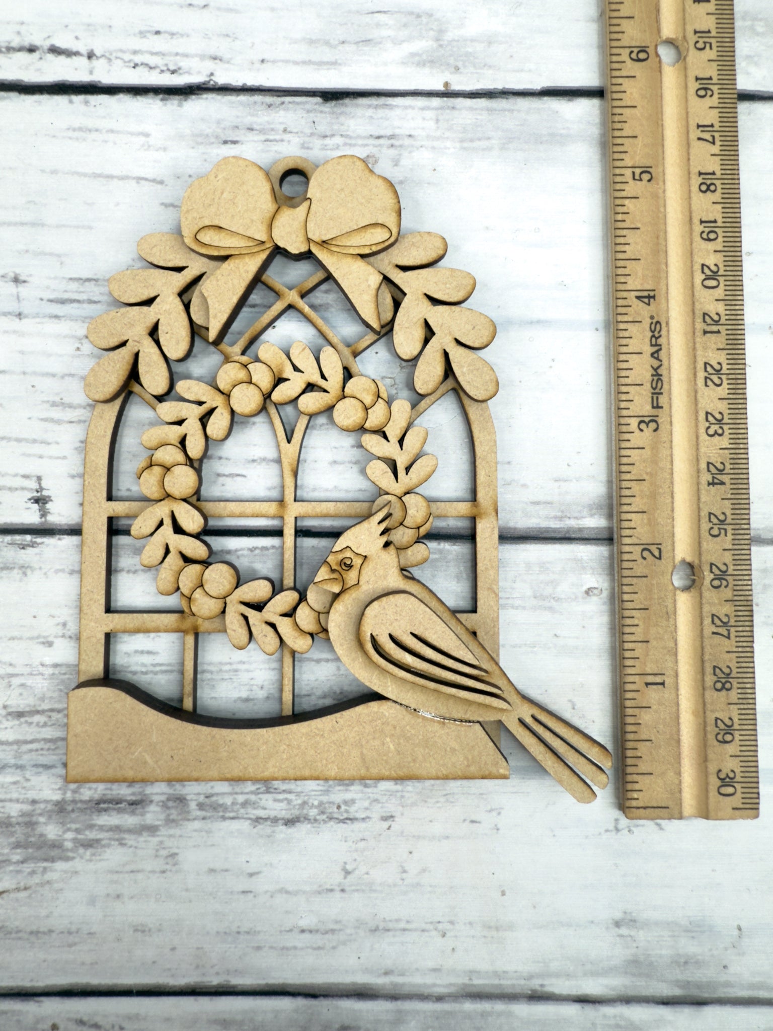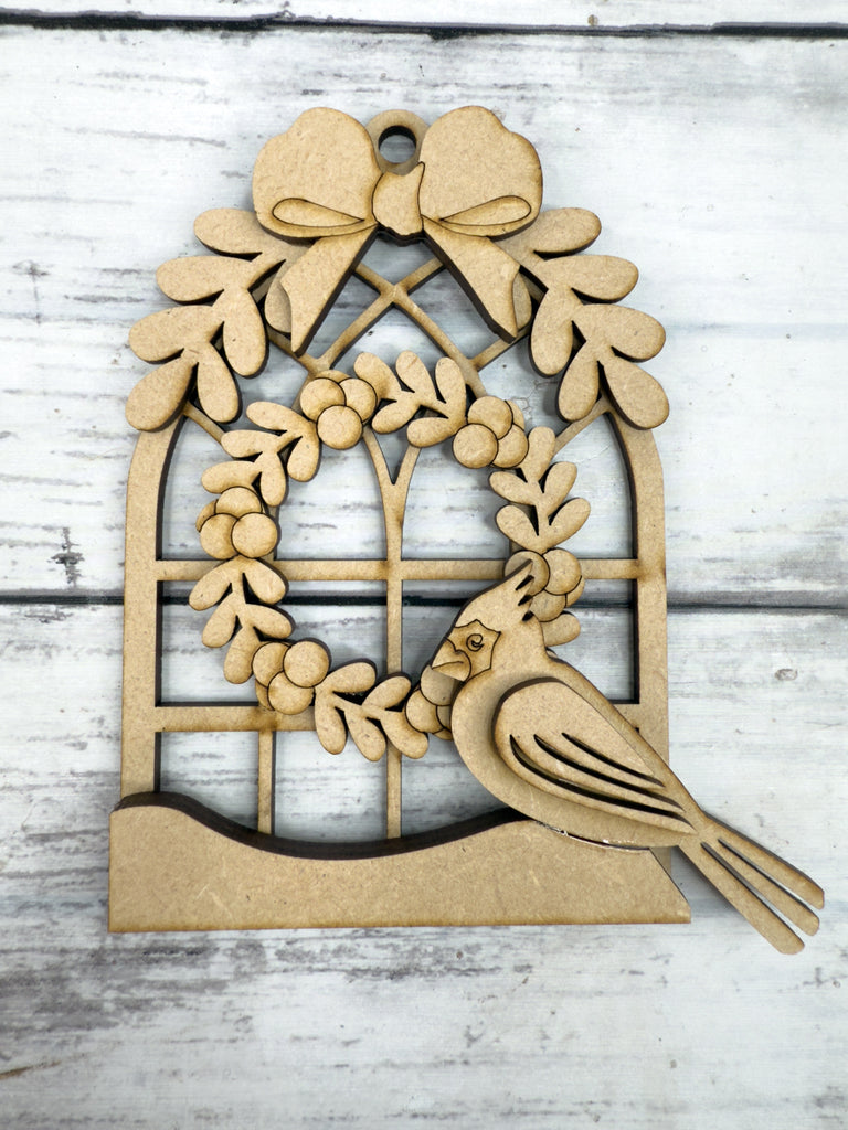 Create a peaceful and meaningful holiday keepsake with this Cardinal & Wreath Window Ornament Kit. This layered ornament features a perched cardinal resting on a holiday wreath inside an arched window frame, all topped with a dimensional bow and greenery.
