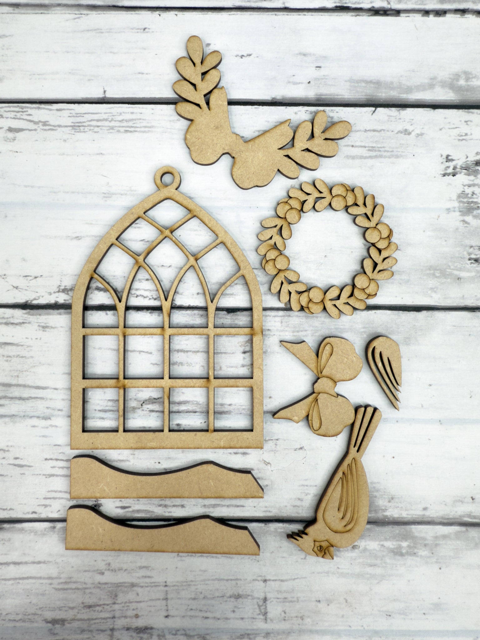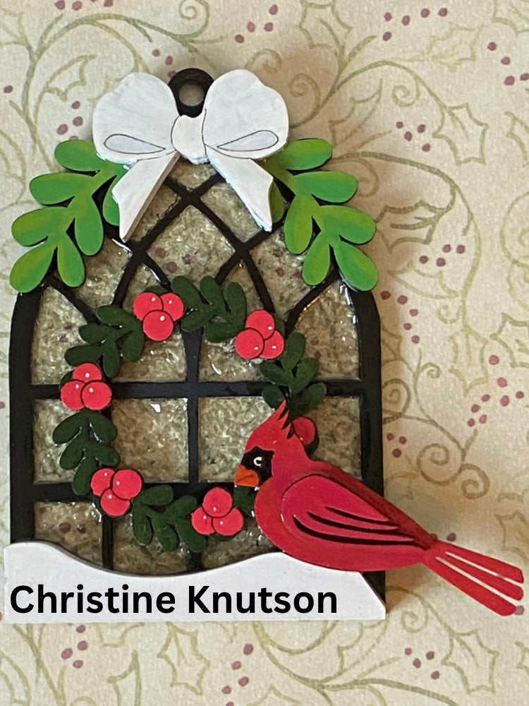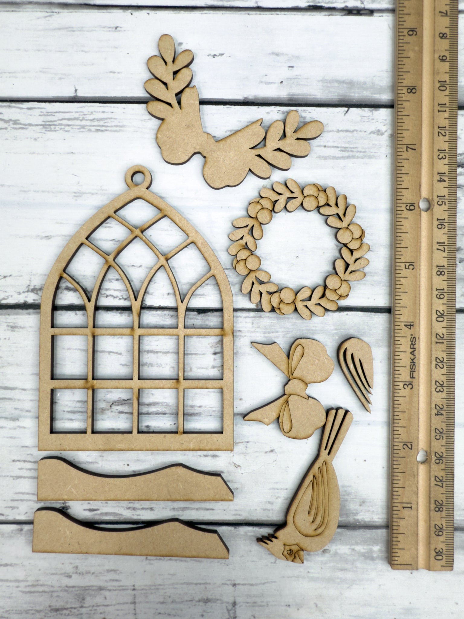 Create a peaceful and meaningful holiday keepsake with this Cardinal & Wreath Window Ornament Kit. This layered ornament features a perched cardinal resting on a holiday wreath inside an arched window frame, all topped with a dimensional bow and greenery.